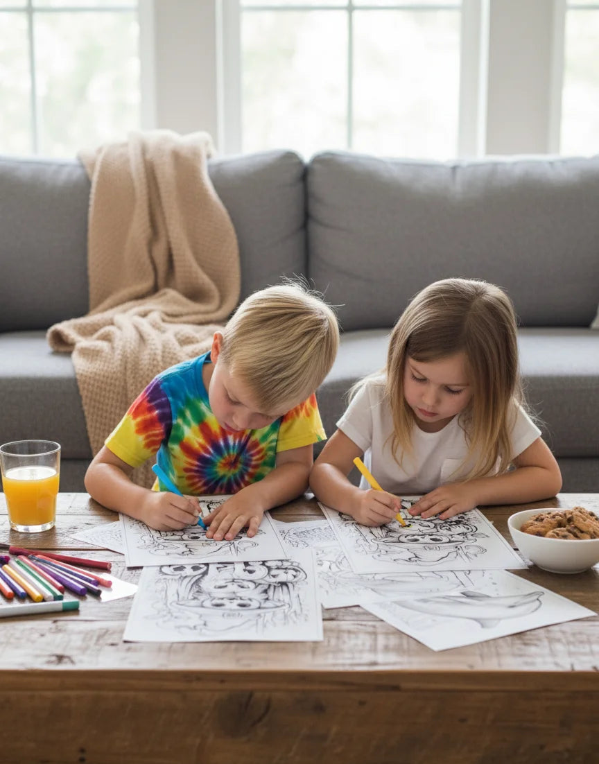 🧘 Relaxing for Adults Too – Color side-by-side with the kids
